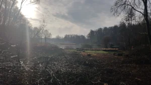 En ville comme dans les espaces naturels, comme près de l’étang, les arbres ont été tronçonnés.
